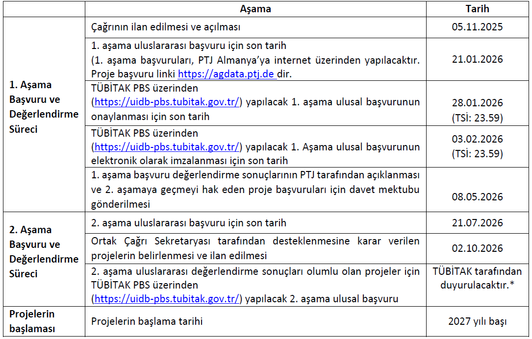 Proje başvuruları 2 aşamalı olup ilk aşamayı geçen proje önerileri 2. Aşamaya başvuru için davet edileceklerdir.