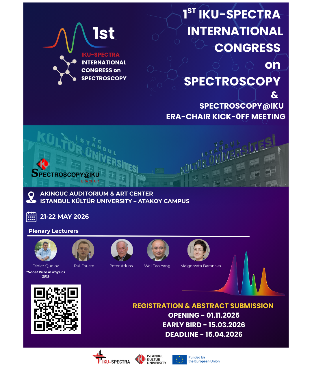 Toplam 2,5 milyon Avro bütçeyle desteklenen ve Türkiye’de HORIZON-WIDERA-2023-TALENTS-01 çağrısı kapsamında finanse edilen ilk ERA-Chair projesi olan Spectroscopy@IKU, İstanbul Kültür Üniversitesi bünyesinde kurulan IKU-SPECTRA Moleküler Bilimler ve Spektroskopi Uygulama ve Araştırma Merkezi’nin oluşturulmasında önemli bir itici rol üstlenmiştir. Merkez, fizik, kimya ve malzeme bilimlerini bir araya getiren disiplinlerarası yapısıyla, ileri düzey moleküler spektroskopi araştırmalarına ev sahipliği yapmayı hedefliyor.