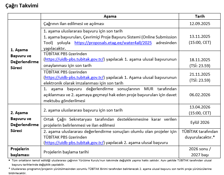 Uluslararası Kurallar: Water4All Ortaklığı 2025 Yılı Çağrısı Uluslararası Çağrı Metni ve Başvuru Kuralları : Water4All Call 2025 Call Documents (Call Announcement, National/Regional Regulations, FAQ gibi önemli tüm dokümanlar)