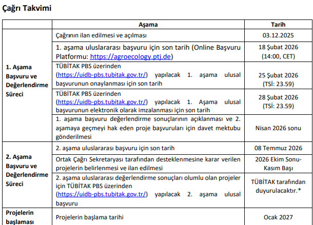 Başvuru Kanalı: Tüm başvurular resmi çevrimiçi platform (https://agroecology.ptj.de) üzerinden İngilizce olarak yapılmalıdır.